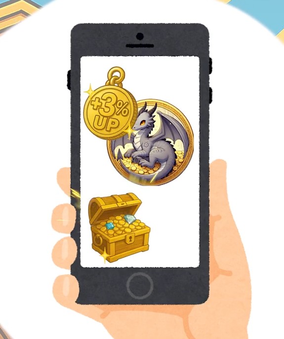 一言でいうと、ガチャコインを使って「モンスターメダル」を抽選で手に入れ、 一定期間あとに他のユーザーへ売却することで楽しむ P2P型メダル売買ゲームです。